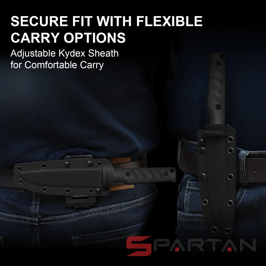 Ножны изготовлены из термопластика Kydex. Они очень плотно удерживают нож даже без страховочного ремешка. Радует что производитель не забыл про отверстие для слива воды. Термопластиковые ножны очень легкие и удобные в использовании. Термопластик очень долговечен, не рассыхается, не трескается, влагоустойчив, ударопрочен, без проблем переносит жару и мороз, а также различные агрессивные среды (моющие средства, щелочи, масла и т. п.).