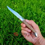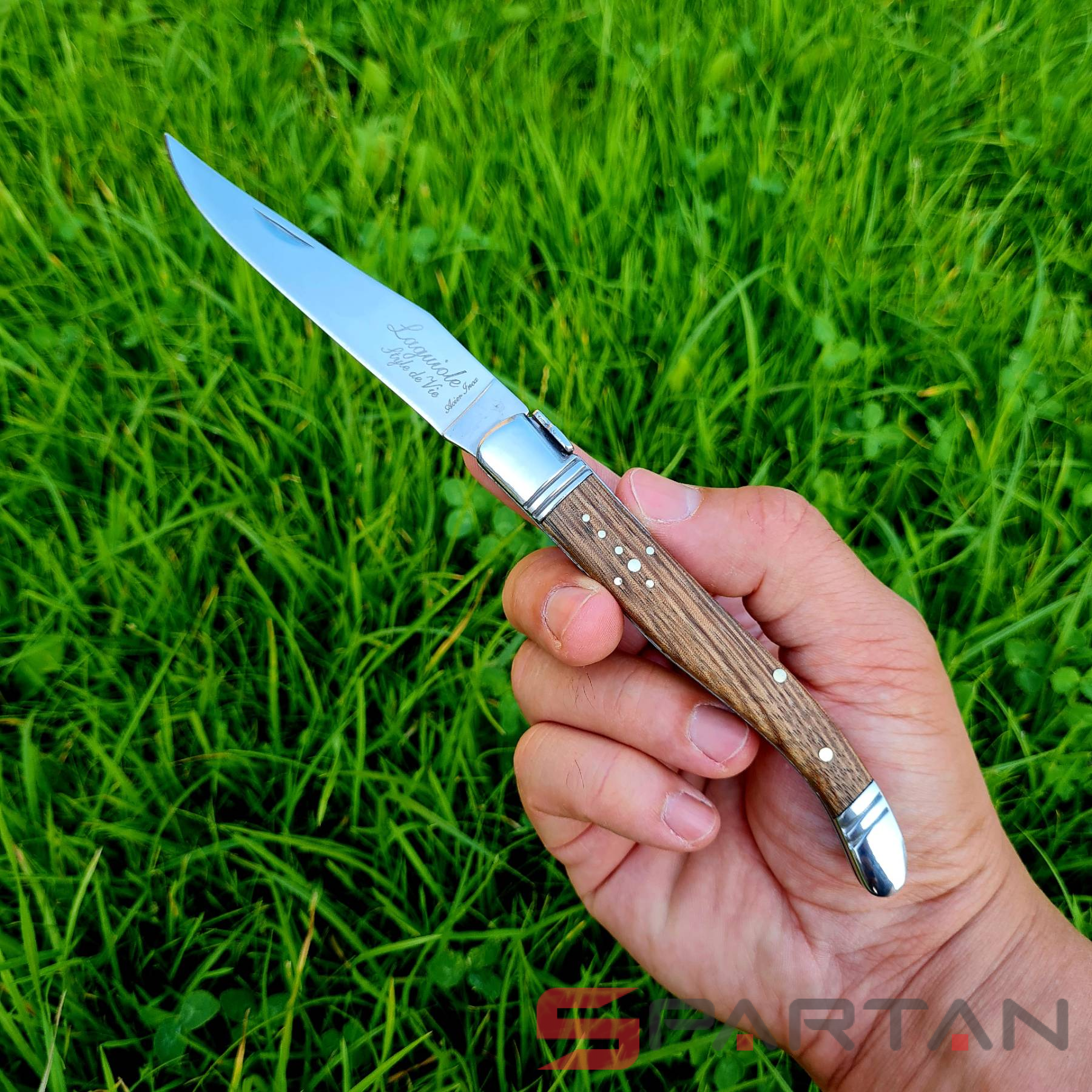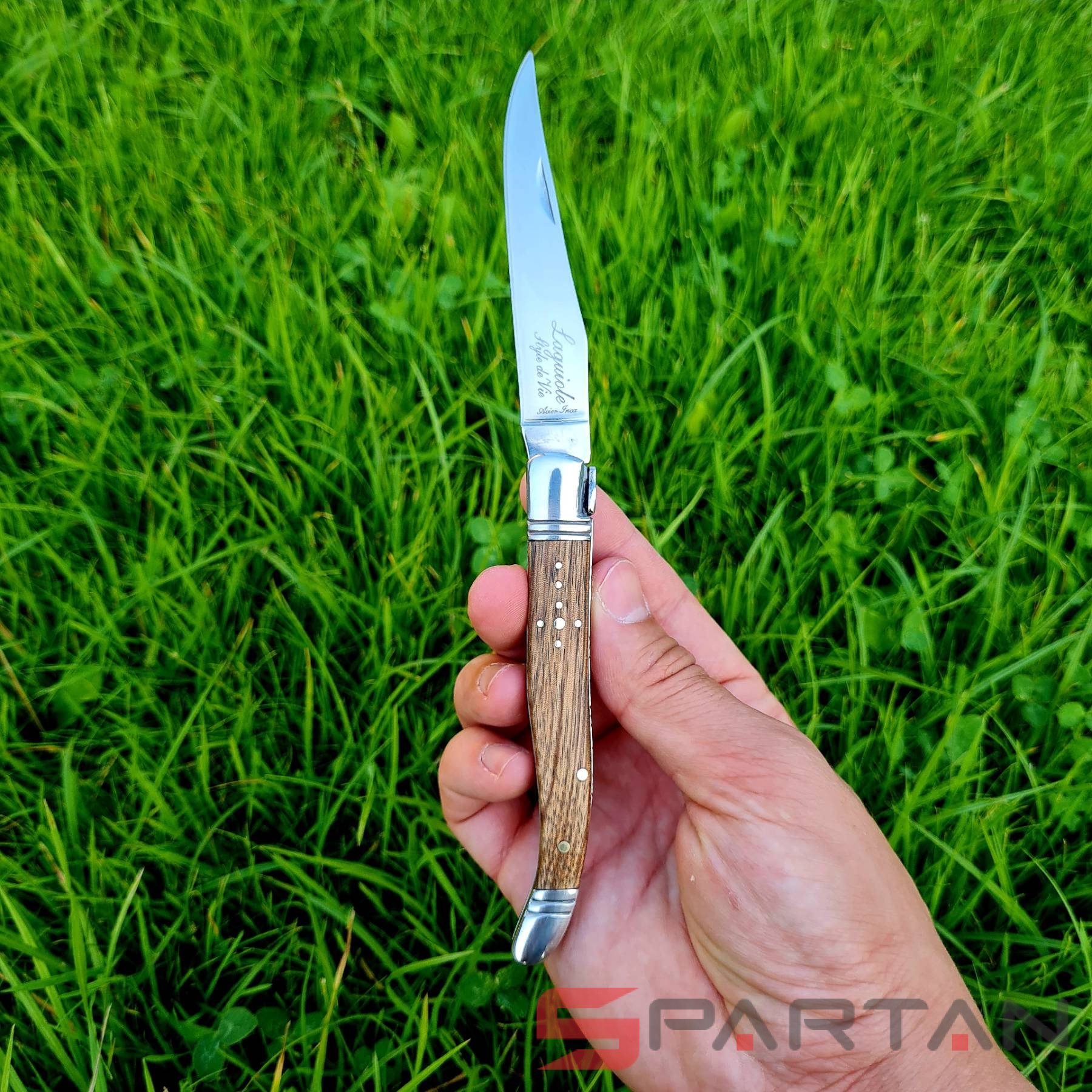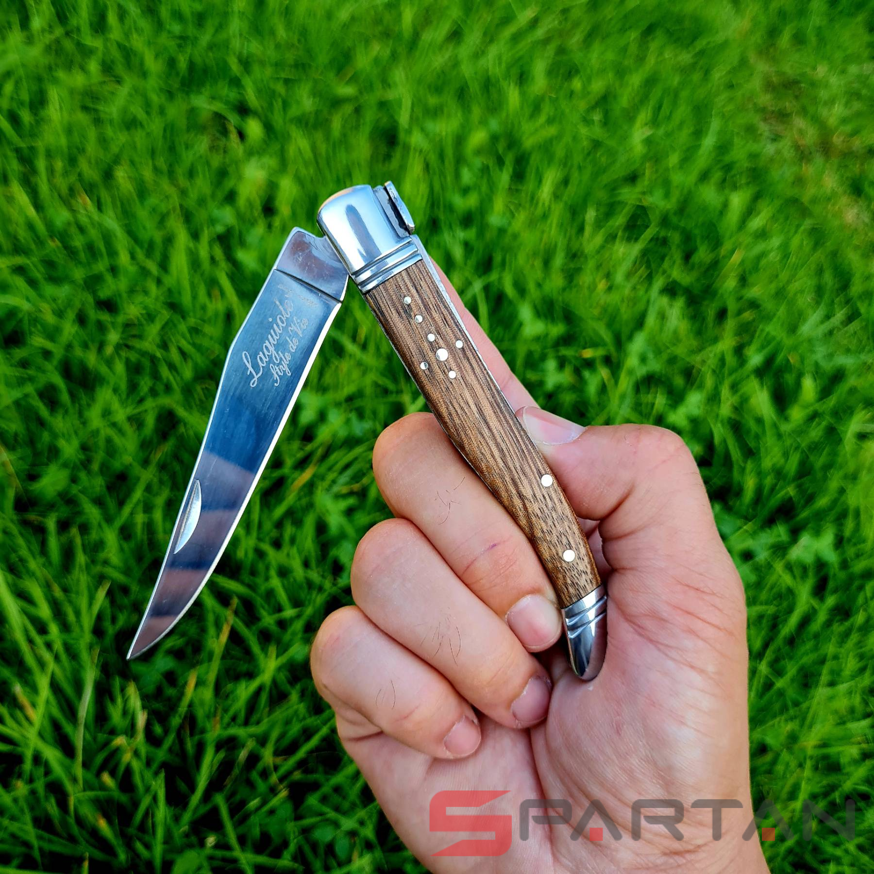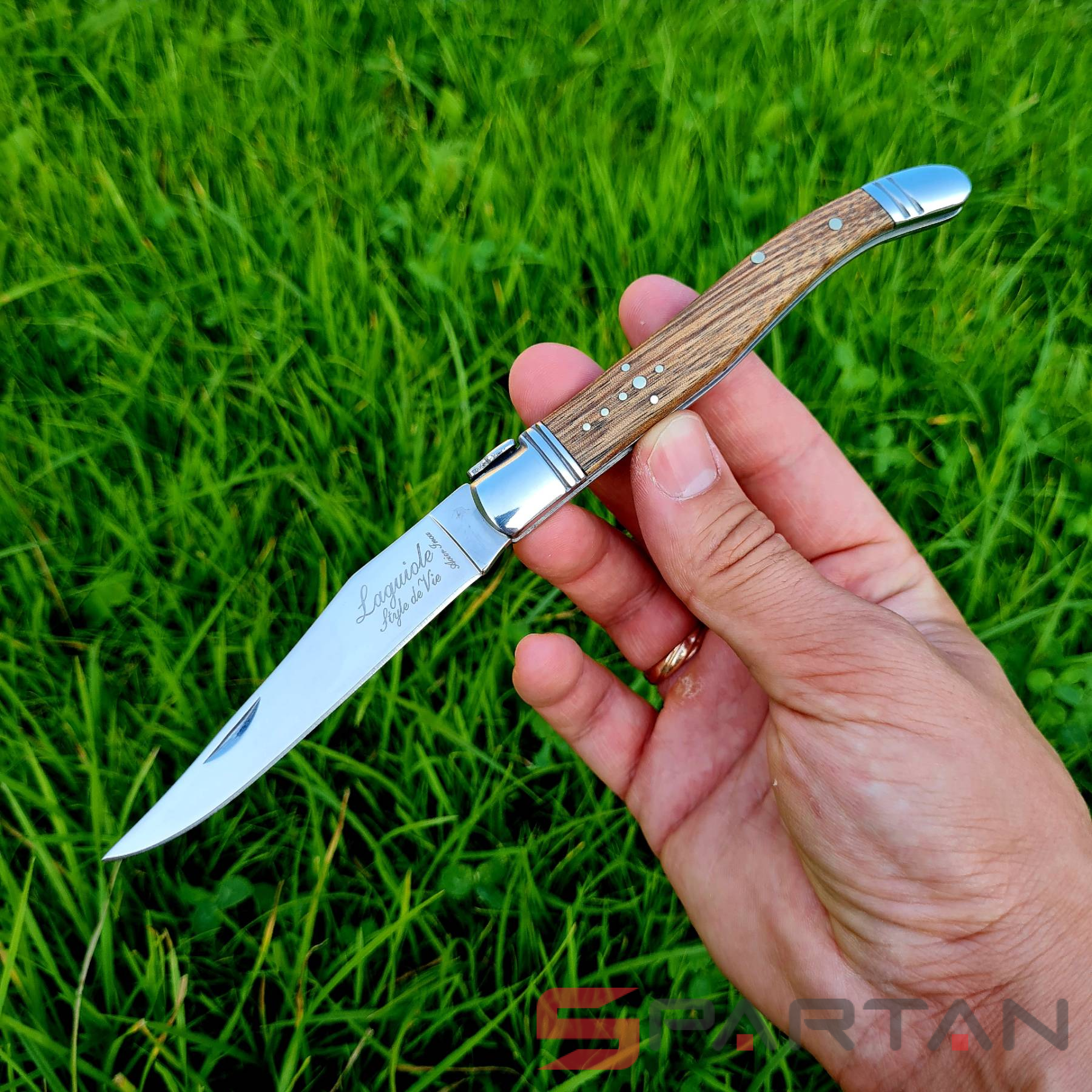 Классический карманный нож Laguiole в исполнении голландских мастеров Style De Vie. Они постарались сохранить весь шарм аутентичных французских ножей, которые производятся в местечке Laguiole с 1829 года. Нож поставляется в деревянной коробке, в которой помимо ножа имеется чёрный кожаный чехол для ношения на поясе и компактный мусат для правки клинка. Нож изготовлен из нержавеющей стали, на рукояти накладки из экзотического африканского дерева Зебрано. На обухе рукояти традиционная маленькая стальная пчёлка и извилистая гильошировка. Теплый, ламповый ножичек, который может выполнять роль прекрасного подарка.