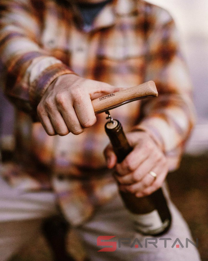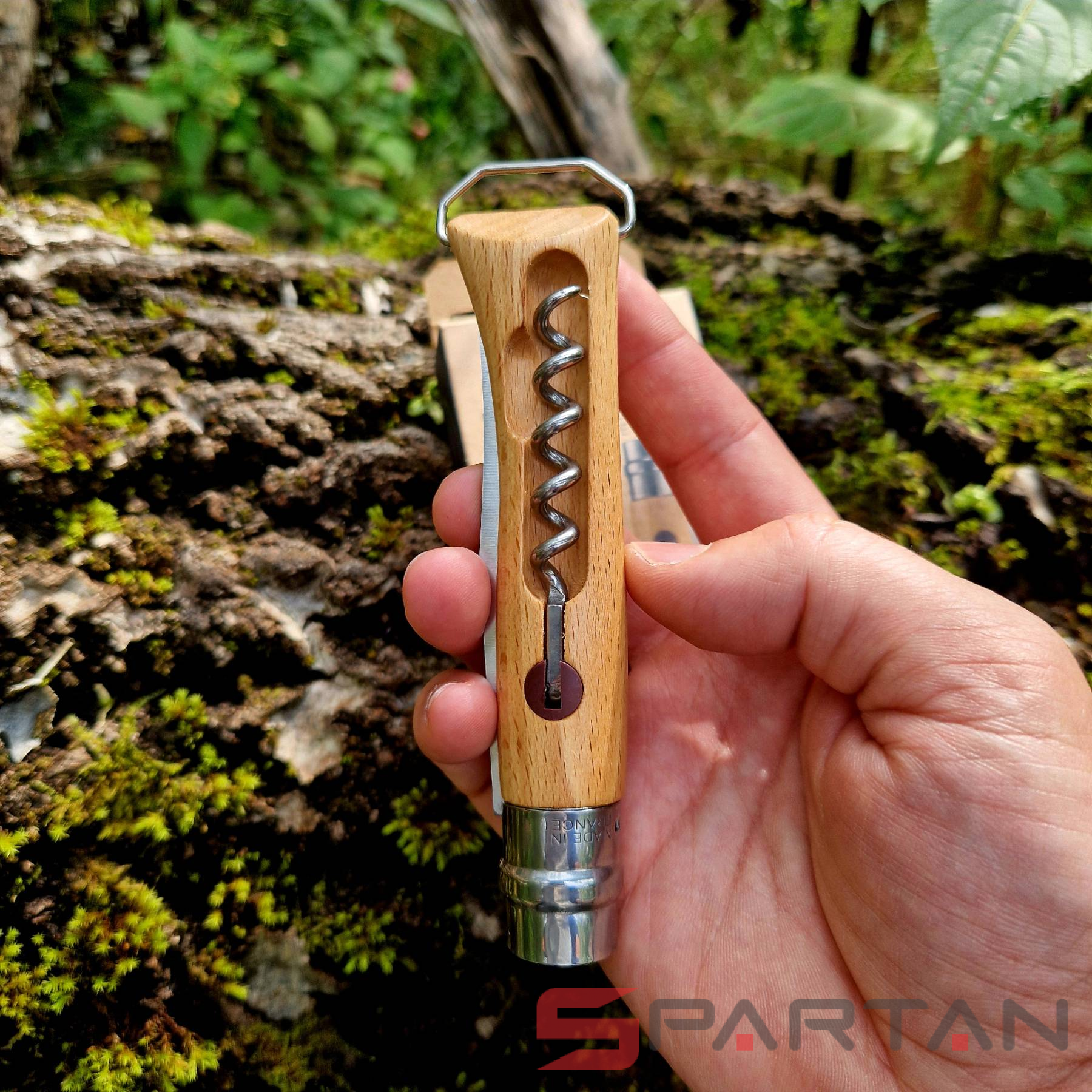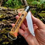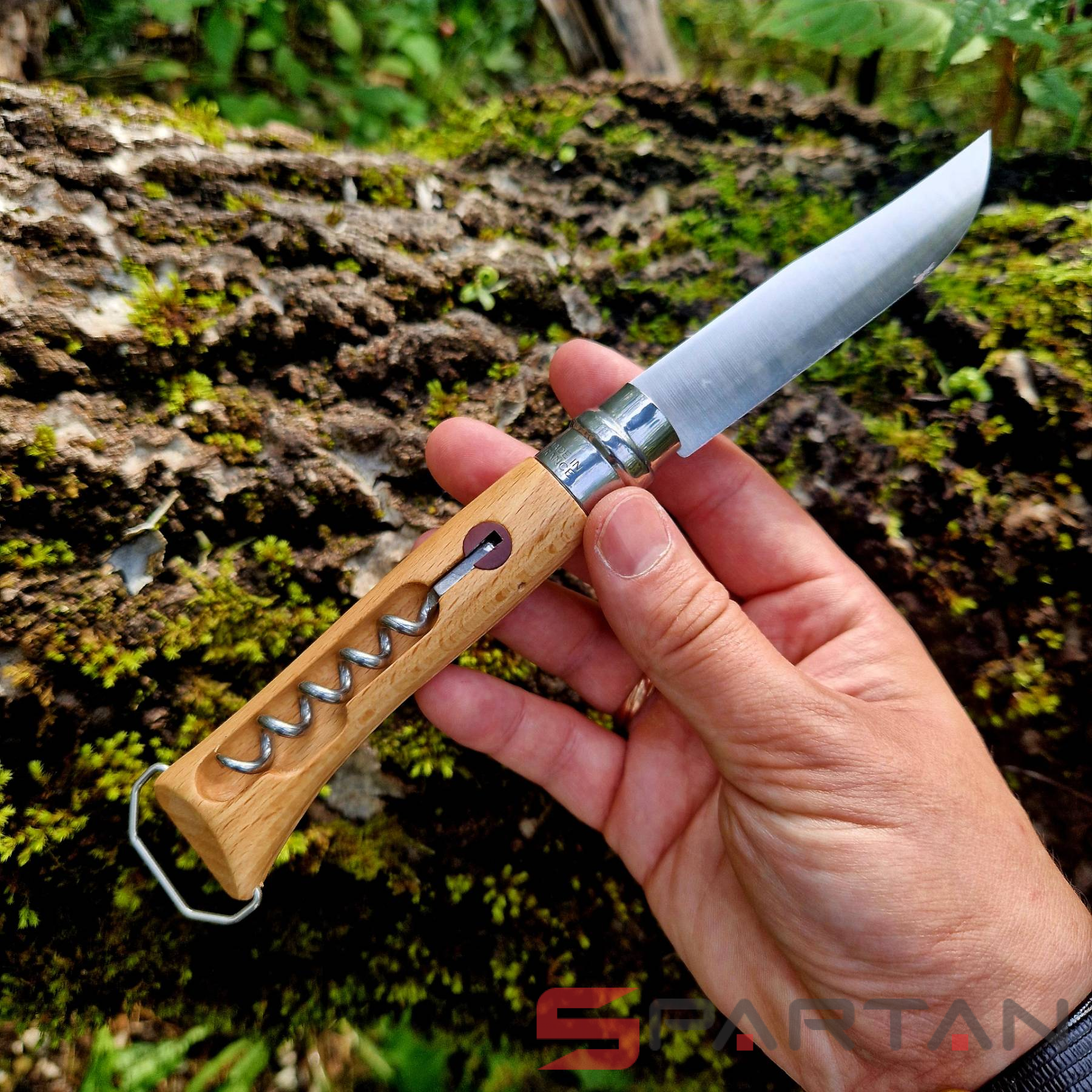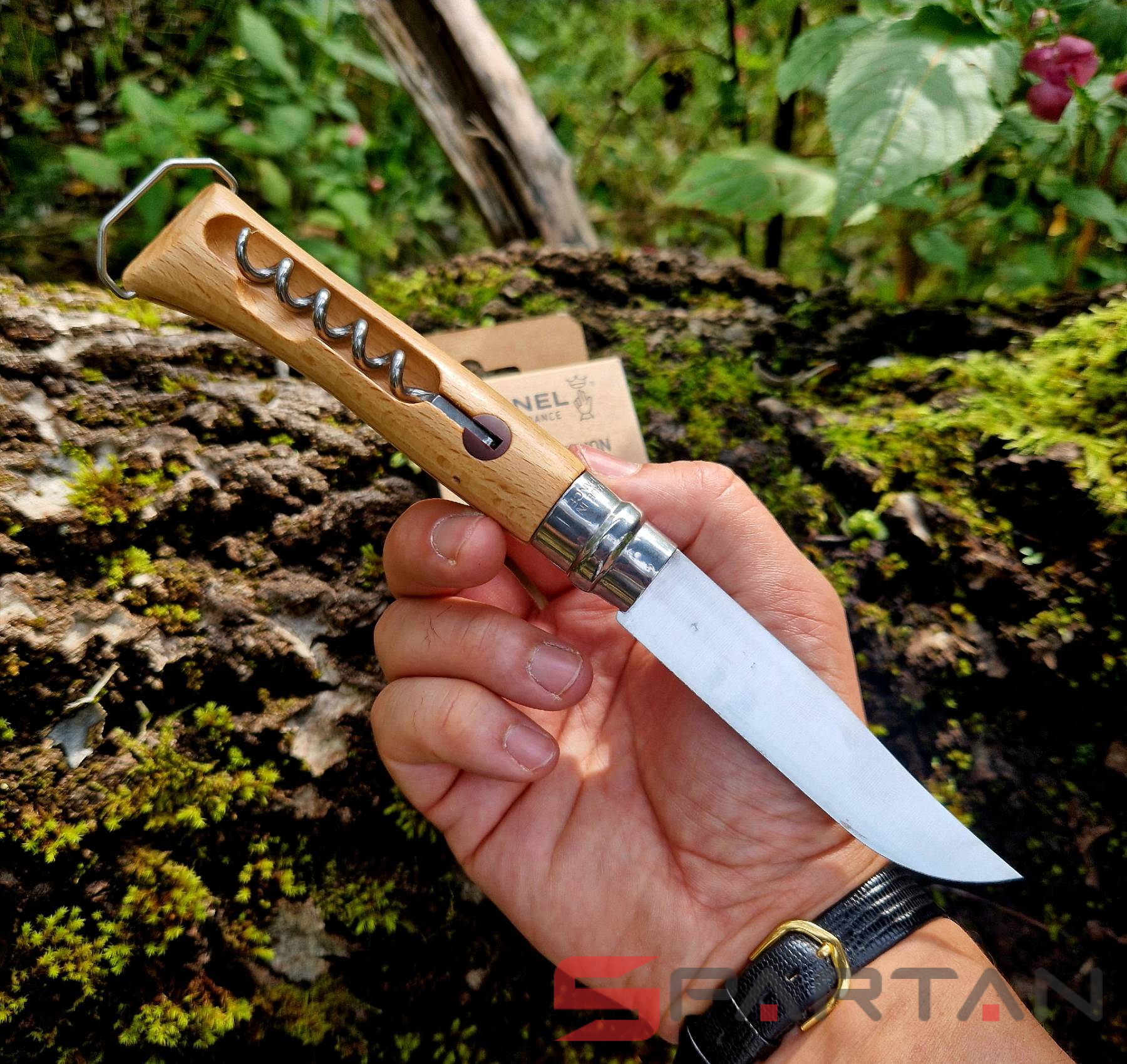 Отличный походный вариант недорогого складного ножа. Классический Opinel 10 INOX с клинком из нержавеющей стали Sandvik 12C27 и рукояткой из цельного куска дерева (светлый бук) в которую интегрирован штопор и открывашка (Bottle Opener). Удобное решение - и закуску порезать и сразу бутылочку откупорить ;). Ножи Opinel отлично подходят как для грибников-рыболовов, так и просто для путешественников. Цифра в названии означает длину клинка в сантиметрах. При желании можно приобрести фирменный кожаный чехол OPINEL Outdoor L.