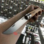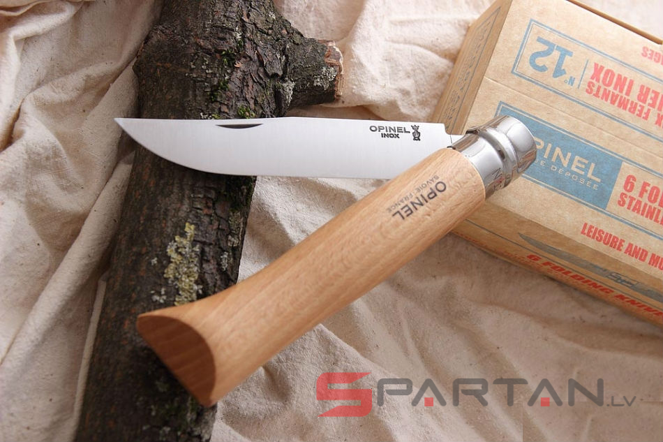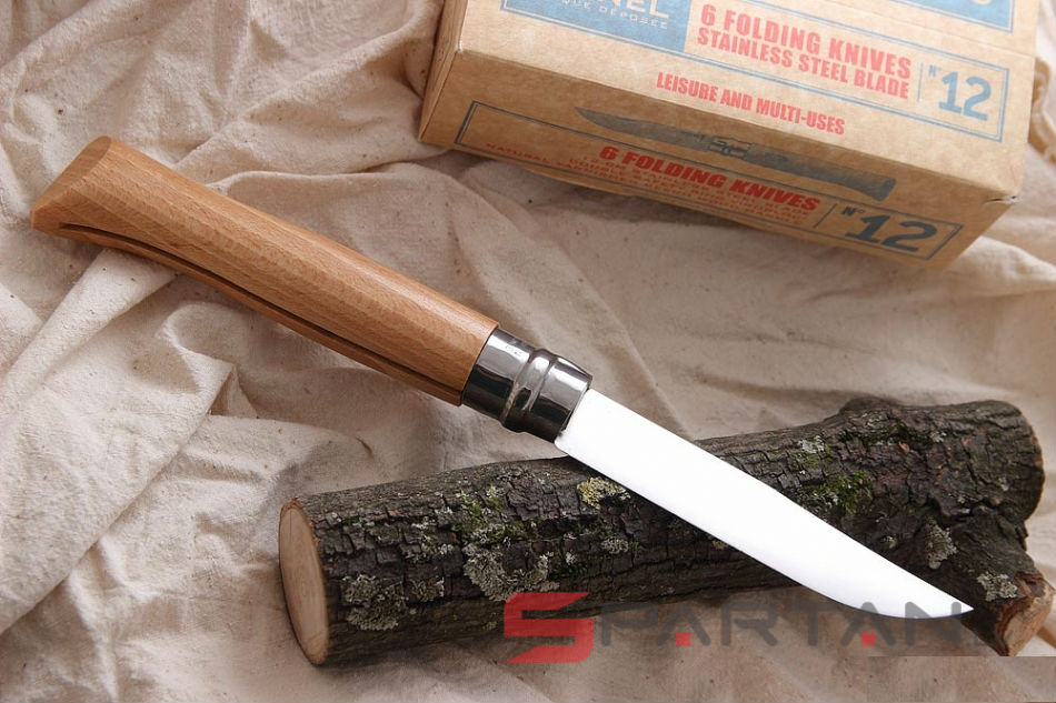 Редкий гигантский Opinel! Несмотря на кажущиеся избыточными габариты, очень любим многими охотниками, рыболовами и путешественниками. Цифра в названии означает длину клинка в сантиметрах. Этот 12 сантиметровый гигант больше похож даже на тесак. Модель Opinel 12 INOX имеет клинок из нержавеющей стали Sandvik 12C27, и рукоятку из цельного куска дерева (светлый бук).