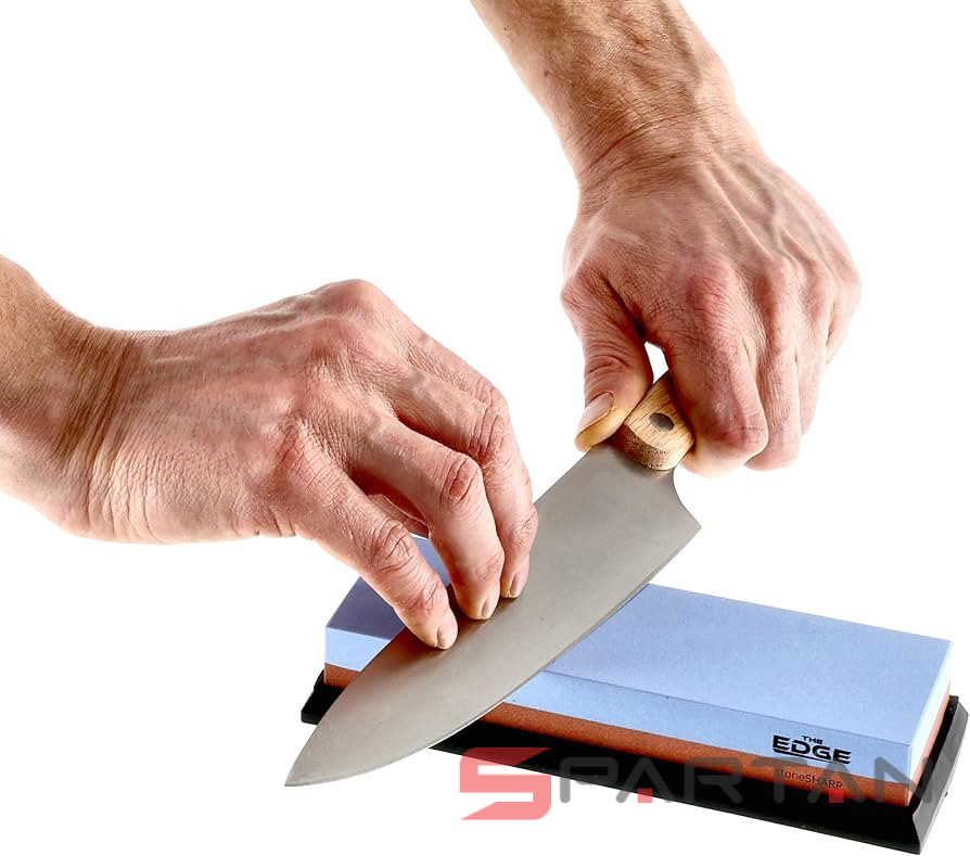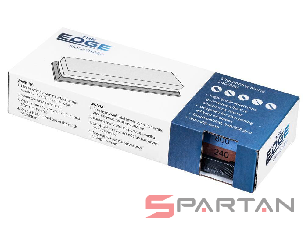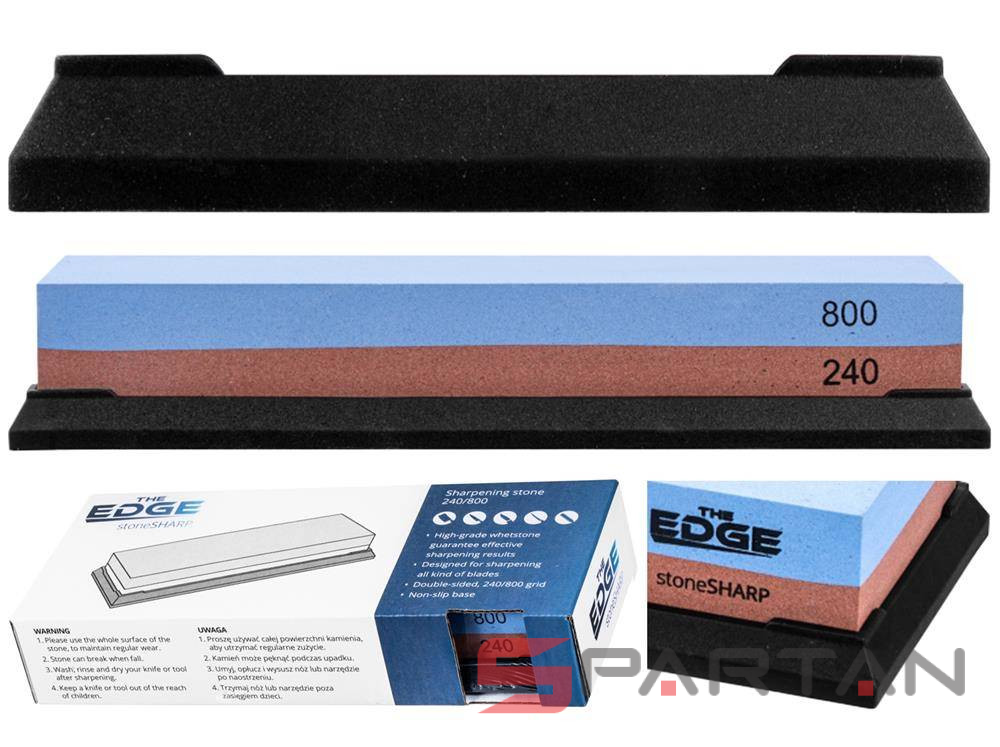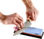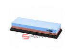 Настольный водный точильный камень изготовленный из корунда, имеющий двойную зернистость: 240 и 800 грит. С его помощью можно восстановить и сгладить кромку клинка, а также придать надлежащую остроту. В комплект входит резиновая подставка, которая предотвращает скольжение камня во время заточки. Перед началом использования камень необходимо замочить в воде на 10-15 минут (пока из него не перестанут выходить пузырьки воздуха).