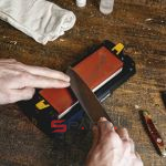 - При заточке ножа наращивайте усилие нажатия постепенно, переходя от легких касаний к более интенсивной работе.