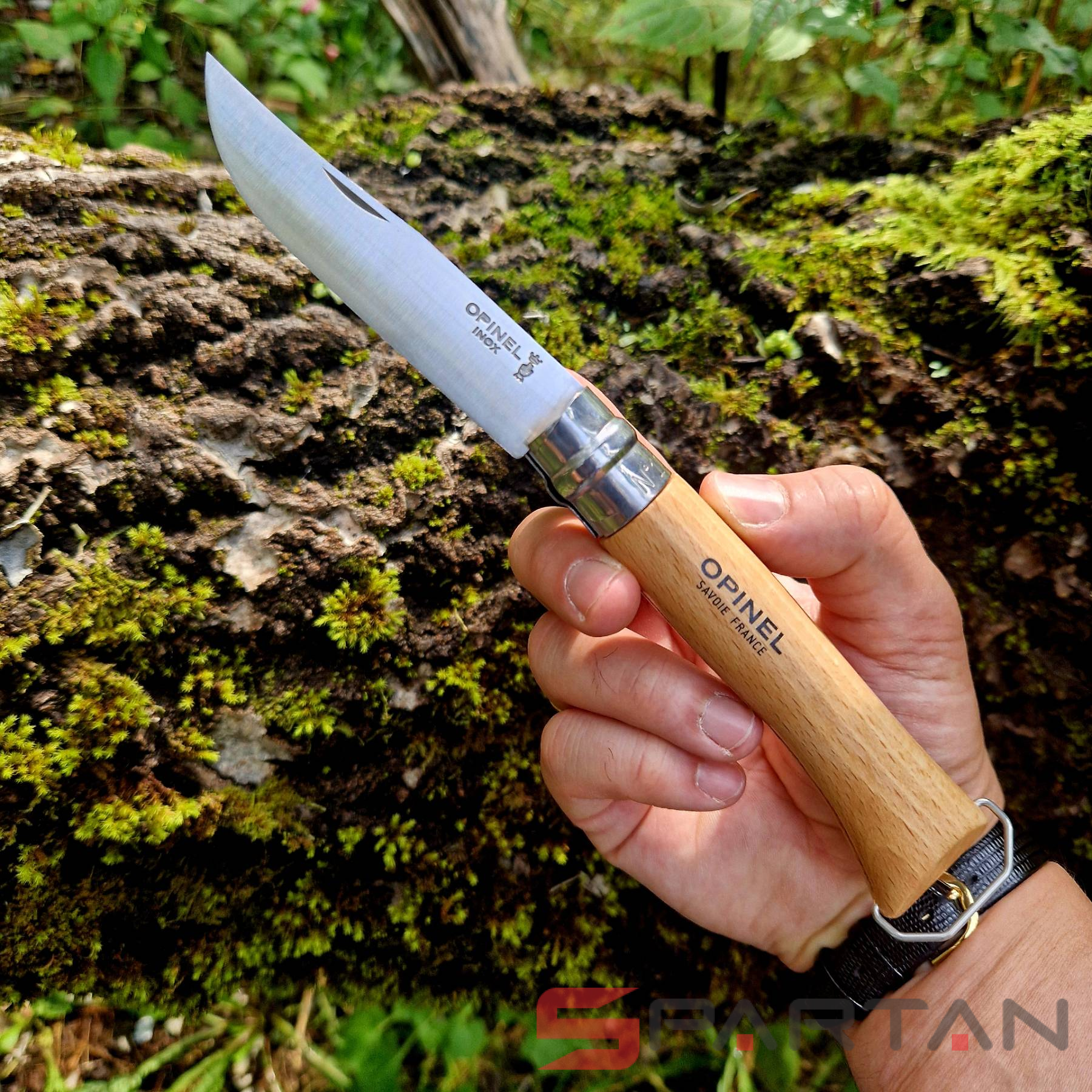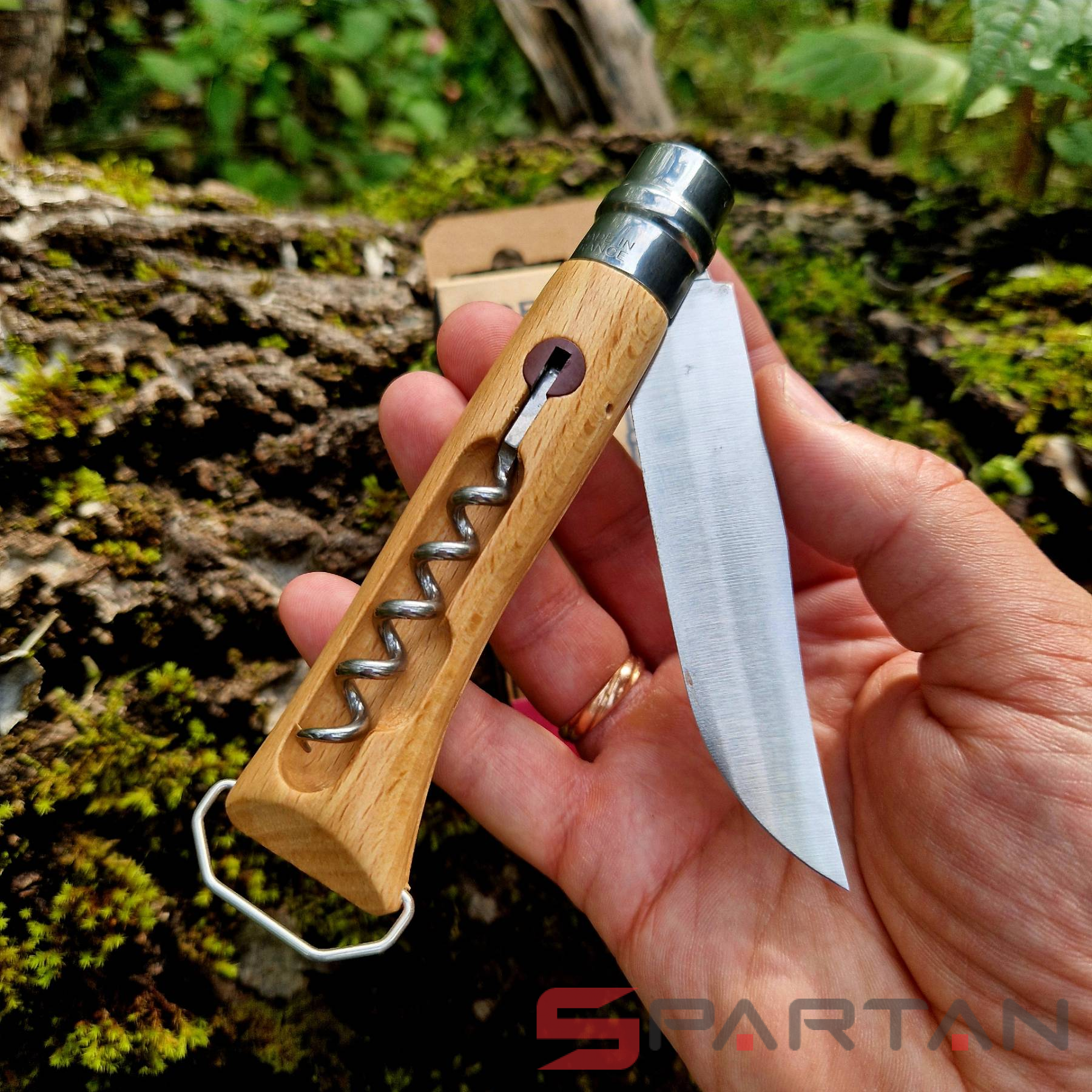 Отличный походный вариант недорогого складного ножа. Классический Opinel 10 INOX с клинком из нержавеющей стали Sandvik 12C27 и рукояткой из цельного куска дерева (светлый бук) в которую интегрирован штопор и открывашка (Bottle Opener). Удобное решение - и закуску порезать и сразу бутылочку откупорить ;). Ножи Opinel отлично подходят как для грибников-рыболовов, так и просто для путешественников. Цифра в названии означает длину клинка в сантиметрах. При желании можно приобрести фирменный кожаный чехол OPINEL Outdoor L.