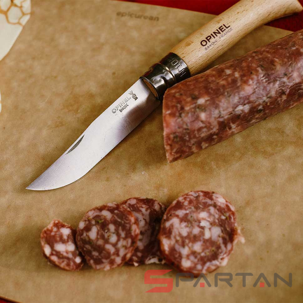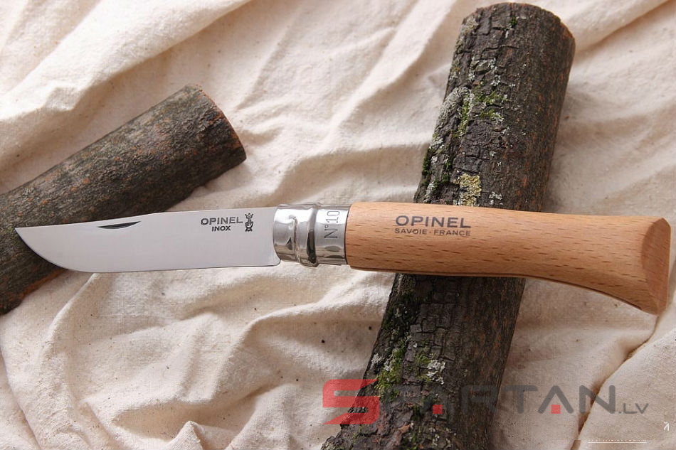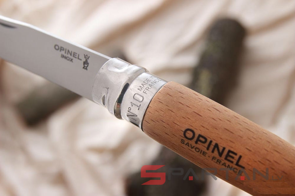 Простой, надёжный, недорогой - основные плюсы всех ножей Opinel. Ножи отлично подходят как для грибников-рыболовов, так и просто для путешественников. Цифра в названии означает длину клинка в сантиметрах. Наиболее популярными размерами как раз и являются Opinel 10. Модель Opinel 10 INOX имеет клинок из нержавеющей стали Sandvik 12C27, и рукоятку из цельного куска дерева (светлый бук). При желании можно приобрести фирменный кожаный чехол OPINEL Outdoor L.