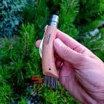 Казалось бы что для похода за грибами не требуется особый нож, но французские ножеделы из OPINEL считают иначе. Складной нож грибника Opinel 8 INOX Mushroom таит в себе несколько интересных усовершенствований. На тыльнике рукояти размещена щеточка для очистки грибов от листьев и иголок. На обух ножа нанесена насечка, которая применяется для чистки грибов в полевых условиях. Вогнутым клинком удобно срезать грибы на толстой или тонкой ножке. Компактные размеры и небольшой вес, позволяют носить нож в кармане, не испытывая дискомфорта. Впрочем при желании можно приобрести фирменный кожаный чехол OPINEL Outdoor L. Сталь клинка нержавеющая, так что опасаться коррозии после прогулок по осеннему лесу, не стоит.